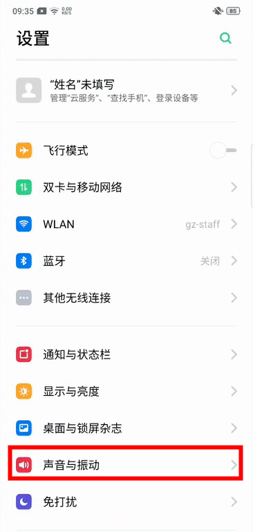 2、打开【声音与震动】,点击进入