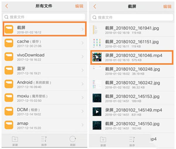 3.进入【文件管理】-【所有文件】-【截屏】中可以找到屏幕录制的视频文件。