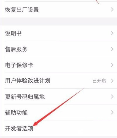 6、再回到第二步“更多设置”拉倒最后,隐藏的“开发者选项”出来了