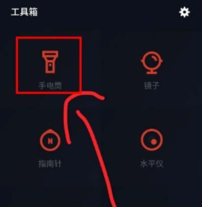 3.也可以通过下拉状态栏,长安“手电筒”进入“手电筒”界面。