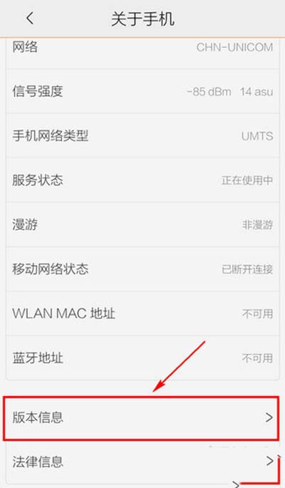 五、在版本信息里就可以查看手机的型号及其他详细信息了