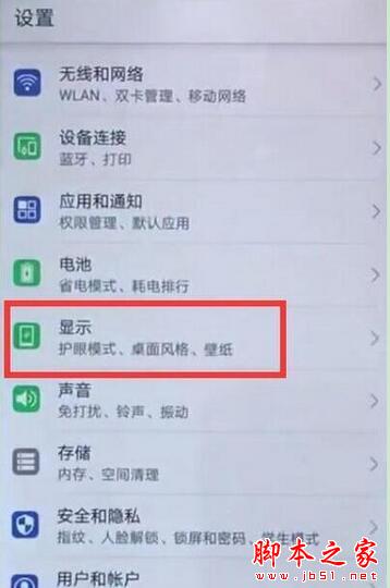 2、进入设置菜单后,找到并点击打开【显示】,