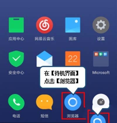 1、在【待机界面】点击【浏览器】,如图所示。