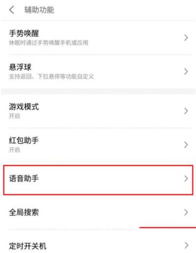 3、打开辅助功能选项之后,进入下图界面,点击【语音助手】选项。