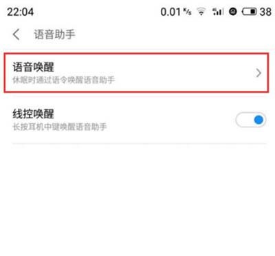 4、打开上图中的语音助手菜单,进入下图界面,点击【语音唤醒】。