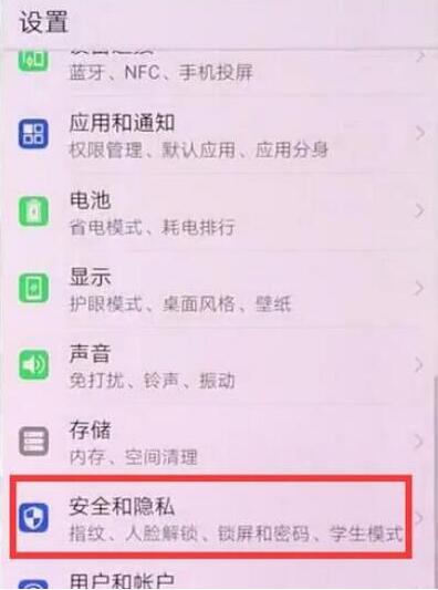 2、找到【安全和隐私】。