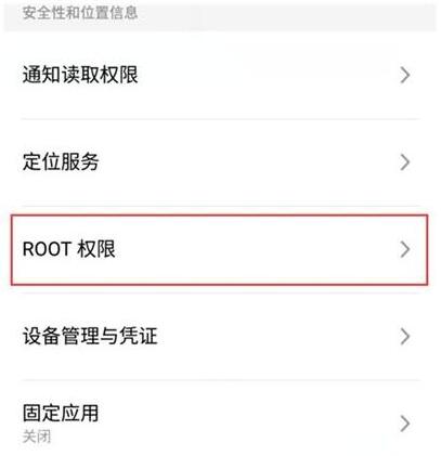 3.进入该选项之后,下拉界面找到【root权限】,继续点击。