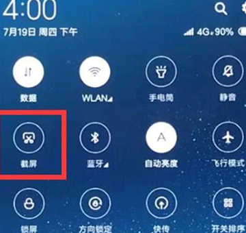 下拉顶部通知栏,找到截屏的按钮,点击截屏。