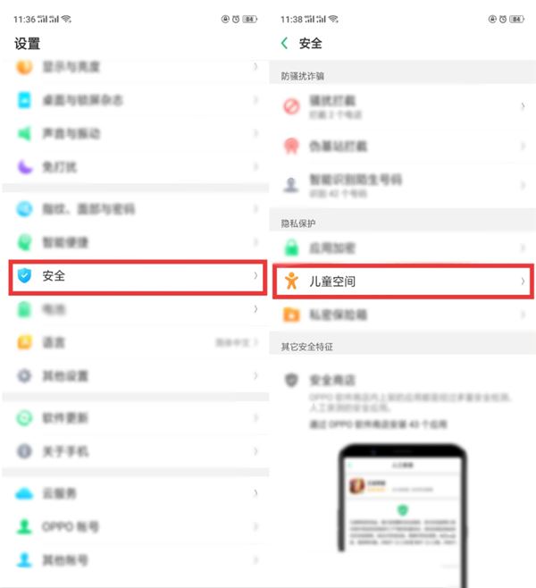 设置方式:依次打开【设置】-【安全】-【儿童空间】。