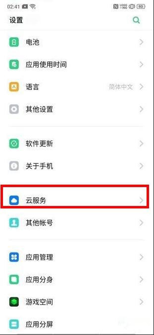 第一步:打开realme x手机的【设置】,找到【云服务】。