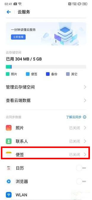 第二步:打开【云服务】,找到【便签】,点击右侧备份开关打开即可。