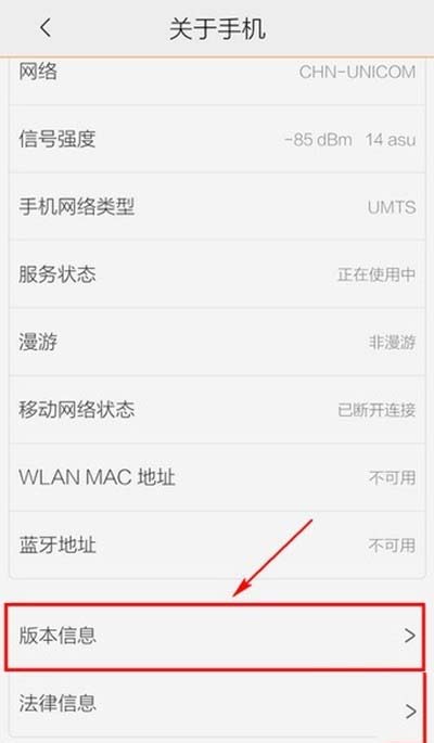 五、在版本信息里就可以查看手机的型号及其他详细信息了