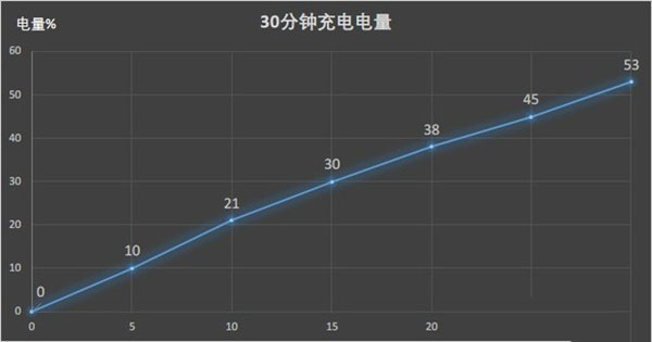 通过测试,我们可以看到,vivo X27在半小时充电测试中,充进了53%电量,这对于本来就不俗的4000mAh超大电池来说,可谓锦上添花。