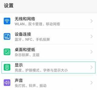 2、在设置菜单下,点击进入【显示】,