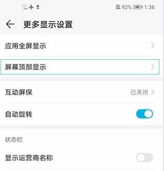 4、在更多显示设置菜单下点击进入【屏幕顶部显示】,
