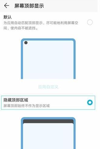 5、最后点击勾选【隐藏顶部区域】即可隐藏左上角摄像头的洞,勾选【默认】即可恢复魅眼全视屏。