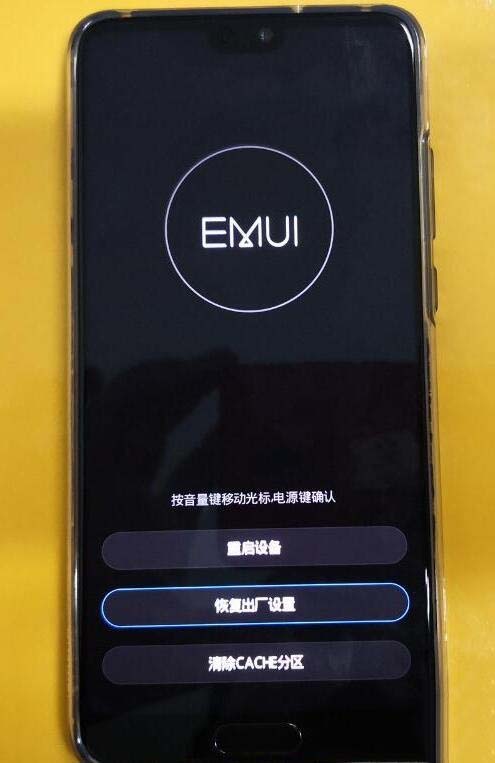3、出现开机画面时松开电源键,3 秒后再松开音量上键,即可进入Recovery模式界面,Recovery模式下是不能触屏的,所以我们需要使用音量上下键来选择哪个选项,选择“恢复出厂设置”,然后按一下电源键确认,