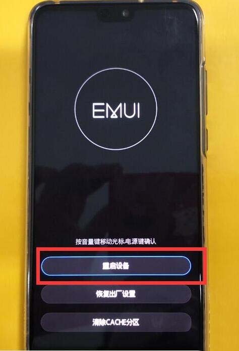 6、格式化CACHE后,手机再次回到Recovery模式界面,选择【重启设备】,双清完成。