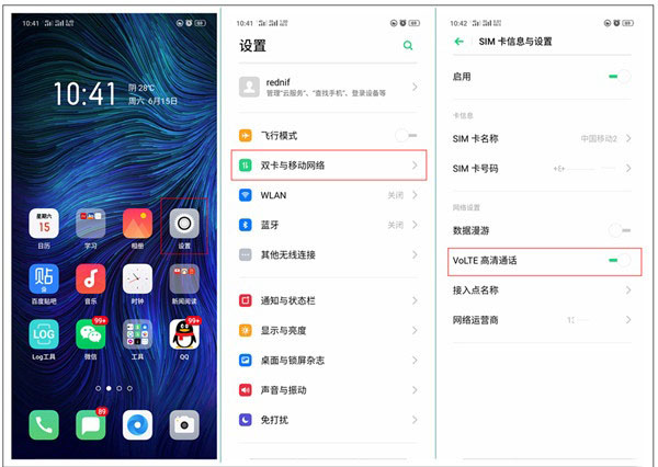 oppo reno z怎么开启volte高清通话