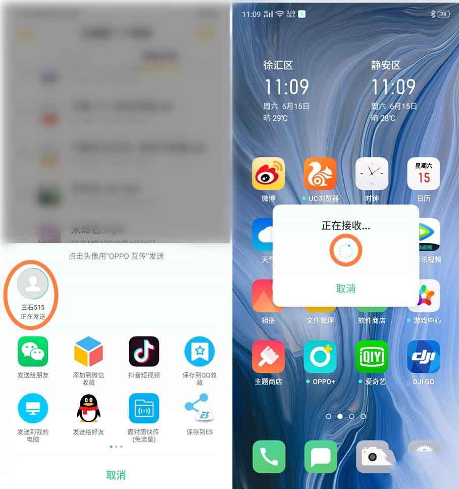 oppo reno z怎么文件互传?