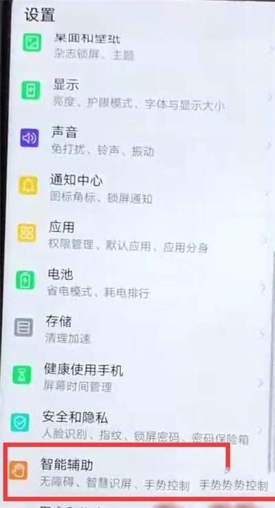 2、在设置菜单下点击打开【智能辅助】,