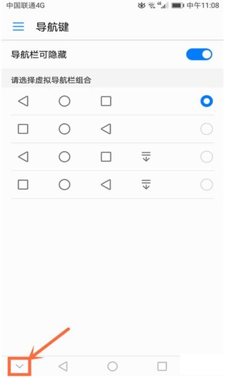 3、除了隐藏导航栏之外,你还可以选择变换虚拟导航栏组合,根据个人习惯和需求选择不同按键排列的导航栏。