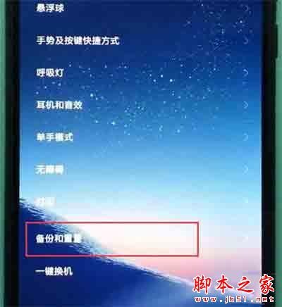 3.进入更多设置之后,找到【备份和重置】选项,点击打开