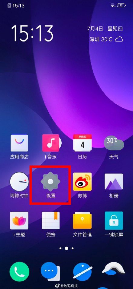 首先打开iqooneo手机,然后在手机界面找到【设置】点击进入。