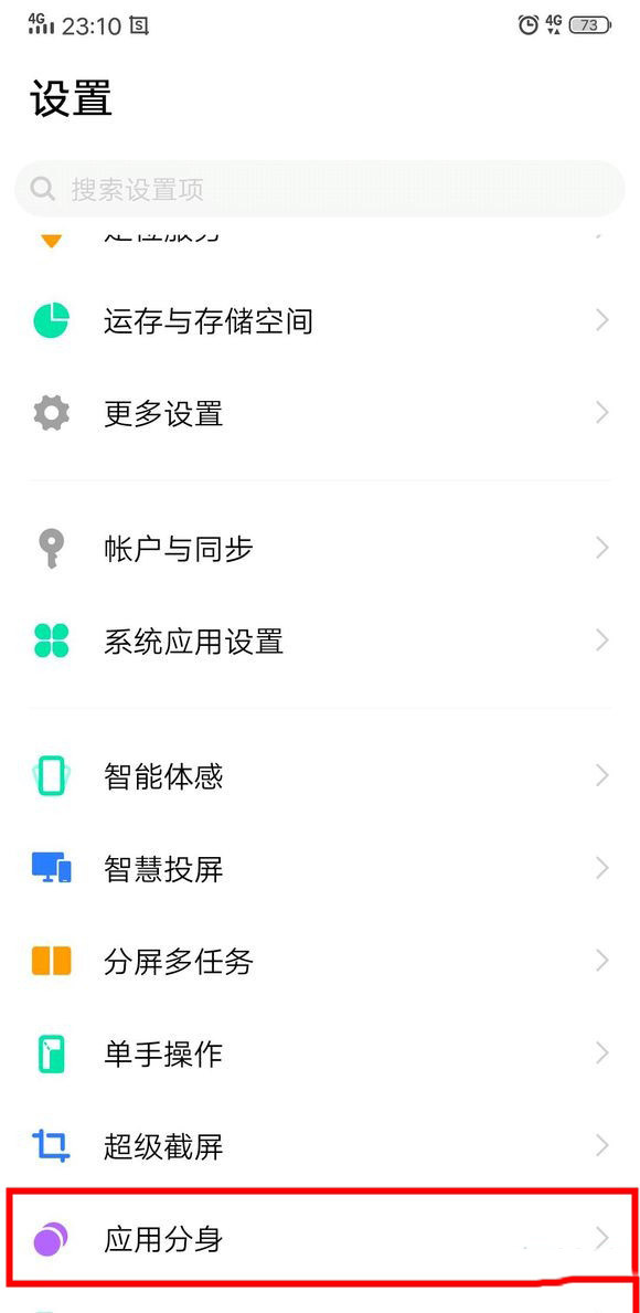 来到设置页面后再滑动屏幕找到【应用分身】功能点击进去。