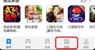 2、进入应用市场后,点击屏幕下方的【管理】,