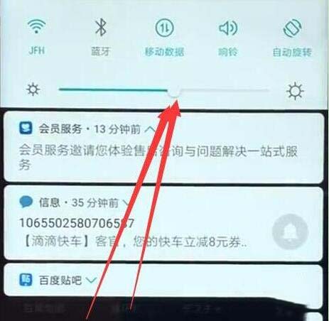 方法一、从华为nova5pro手机屏幕顶端的状态栏处下拉,然后我们左右拖动亮度条上的滑块即可调节屏幕亮度。