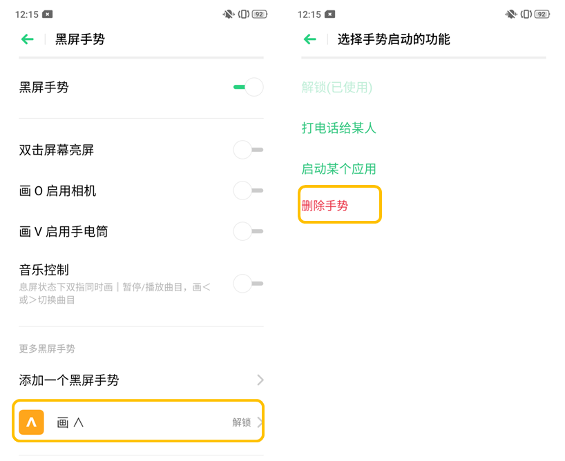 3、如果自己添加的哪个手势不需要了,可以点击相应的手势—删除手势即可。