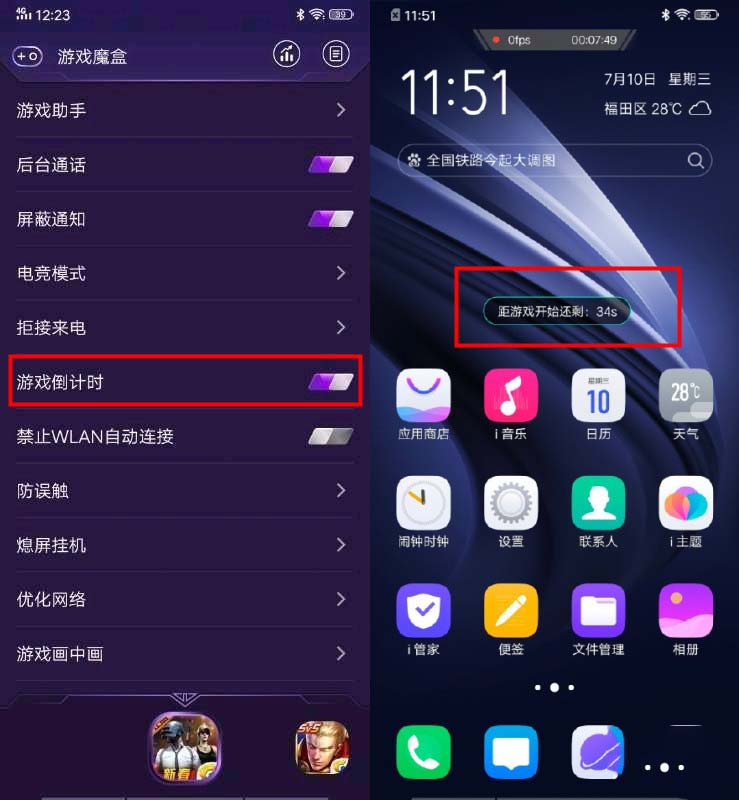 iqooneo的游戏魔盒里支持游戏智能倒计时功能,可以在设置中的游戏魔盒中开启该功能也可以在游戏的侧边栏中开启。