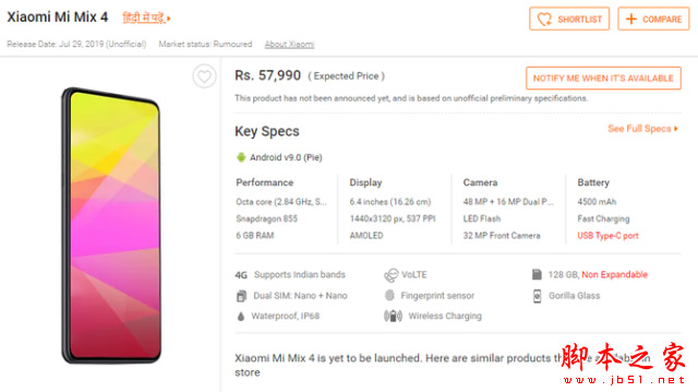 小米MIX4最新爆料:7月9日消息,印度网站91mobiles的商品页中更新了关于小米MIX4的新内容,包括渲染图、配置情况、预估售价等信息。感兴趣的朋友快来了解一下吧。