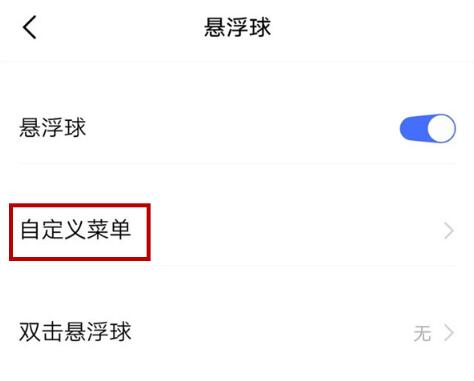 点击“自定义菜单”,进入悬浮球呼出菜单界面。