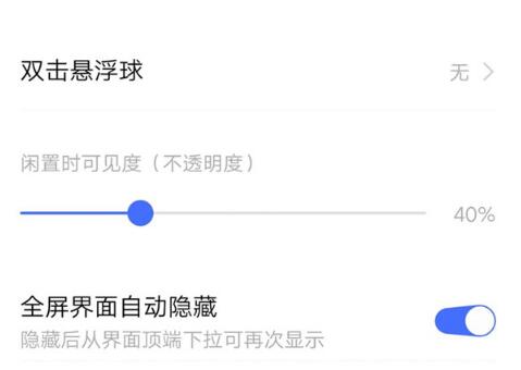 您还可以对悬浮球本身进行设置——双击悬浮球执行快速指令;调整悬浮球的不透明度以及开启“全屏界面自动隐藏”功能。