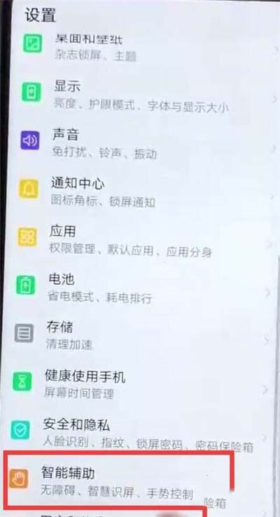 2、在设置菜单下点击打开【智能辅助】,