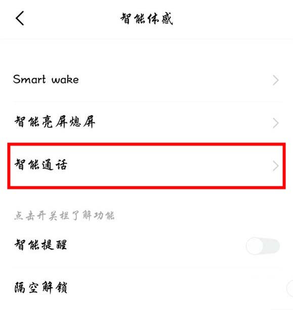 2.点击进入【智能体感】,找到【智能通话】并点击进入
