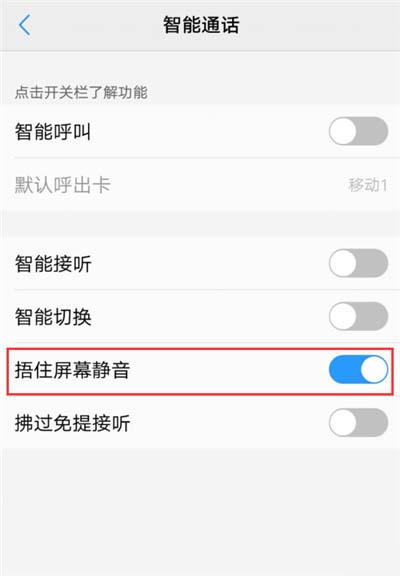 4.把【捂住屏幕静音】后面的开关打开就设置完成啦