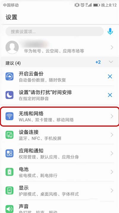 2、在设置菜单下点击打开【无线和网络】,