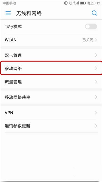 3、接着点击进入【移动网络】,