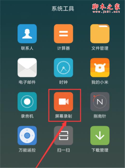 2、在文件夹中找到【屏幕录制】图标,点击进入屏幕录制,