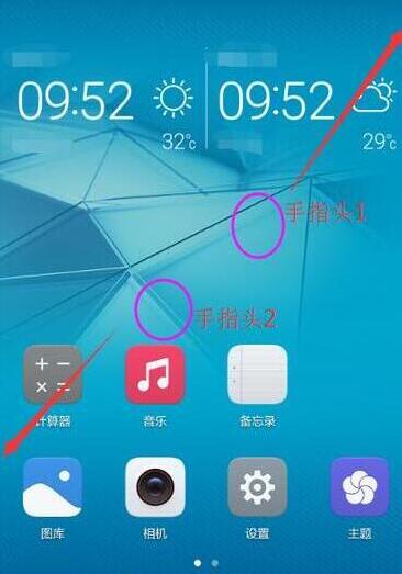 1、双指捏合放在华为nova5pro手机屏幕上,然后双指往外推,