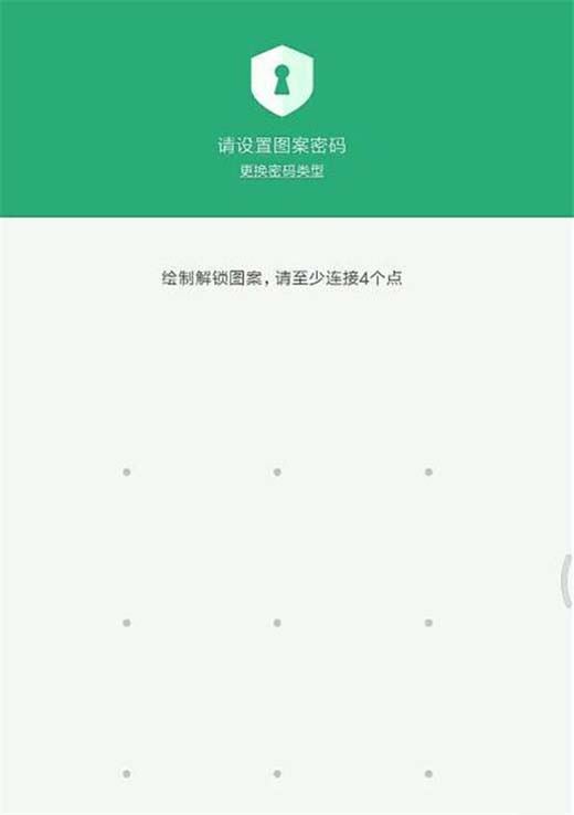 4、设置好密码,可以更换密码类型,这里我们选择图案密码,设置好之后,使用加密的软件之前需要输入之前设置好的密码才可使用。