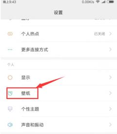 2、在设置界面,找到并点击【壁纸】这一项,点击打开,