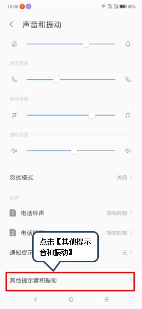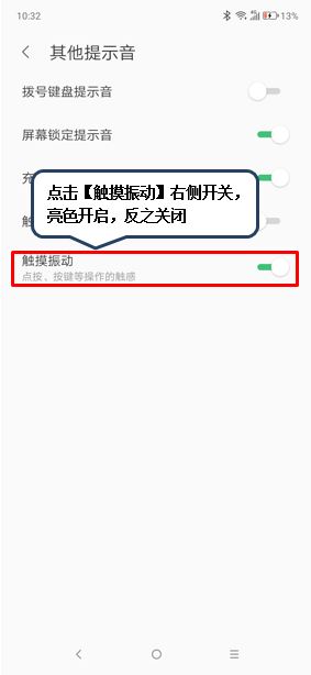 3、点击【其他提示音和振动】,点击【触摸振动】右侧开关,亮色则为开启,反之关闭。