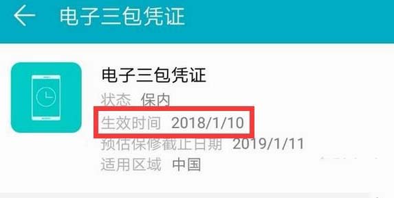 3、在我的页面点击进入【电子三包凭证】,然后我们可以看到【生效时间】即为激活时间。