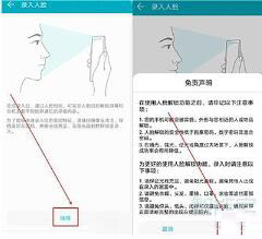 2、然后,手机就会提示我们准备录入人脸,点击下方的【继续】选项,在弹出的“免责声明”中单击【同意】就可以开始录入人脸。