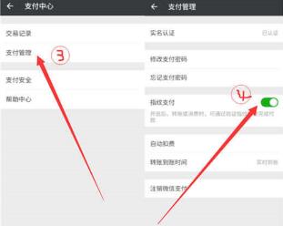 2、这时候我们会看到支付管理一项,点击【支付管理】选项,打开【指纹支付】旁边的开关,
