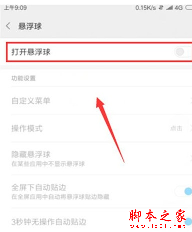 第四步:我们可以看到悬浮球是关闭状态的,我们点击后面的开关按钮使其变成蓝色即为开启。